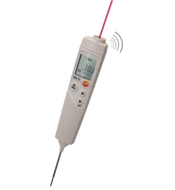 testo 826-T4紅外及刺入式溫度計(jì)可通過(guò)紅外測(cè)量方式無(wú)損快速掃描表面溫度,若表面溫度超出限制范圍,還可通過(guò)自帶的刺入式溫度探頭進(jìn)行快速精確的中心溫度測(cè)量 (如酸奶等食品)。